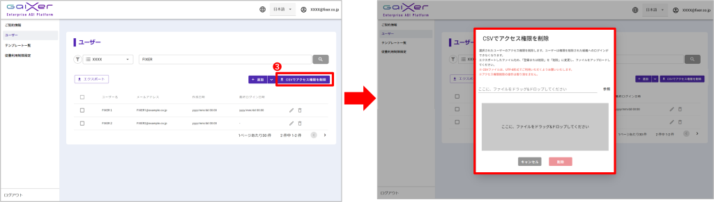 また、エクスポートしたCSVファイルを使用し、ユーザーの追加や削除をまとめて行うことが