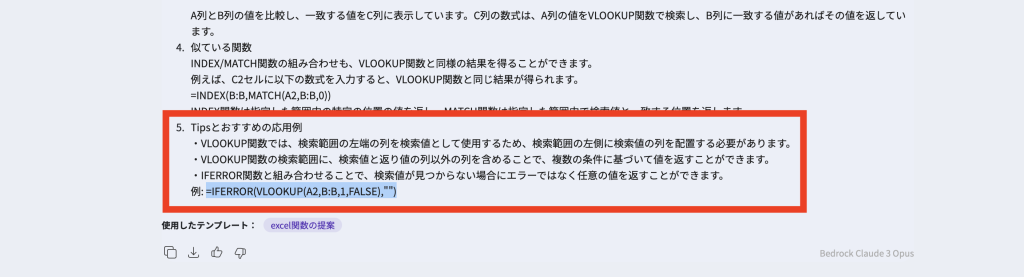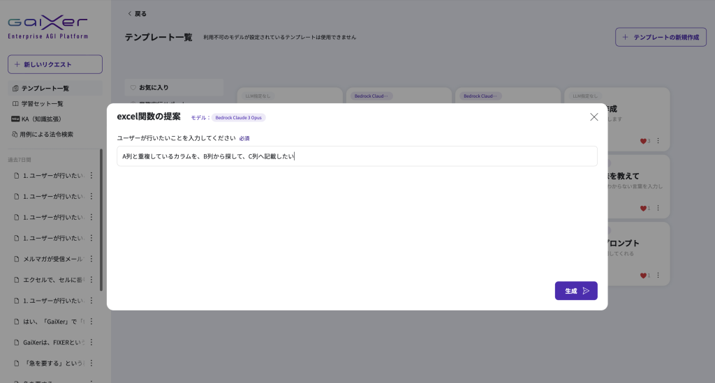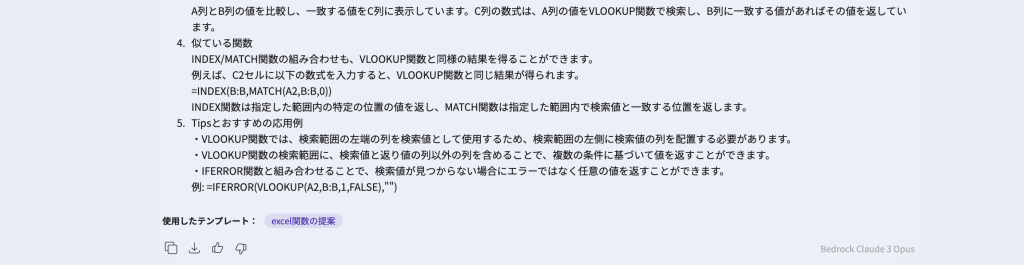 「Excel関数の提案」を行うテンプレートでは、関数を聞き出すことができます。