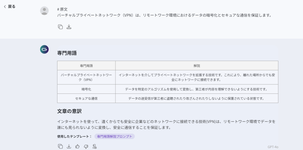 今回は、「専門用語解説プロンプト」テンプレートのデモンストレーションを紹介します。