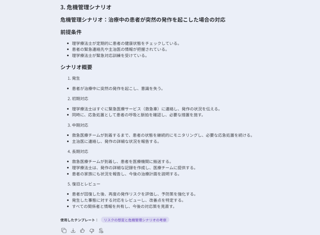 今度は「3.危機管理シナリオ」を出力してくれます。