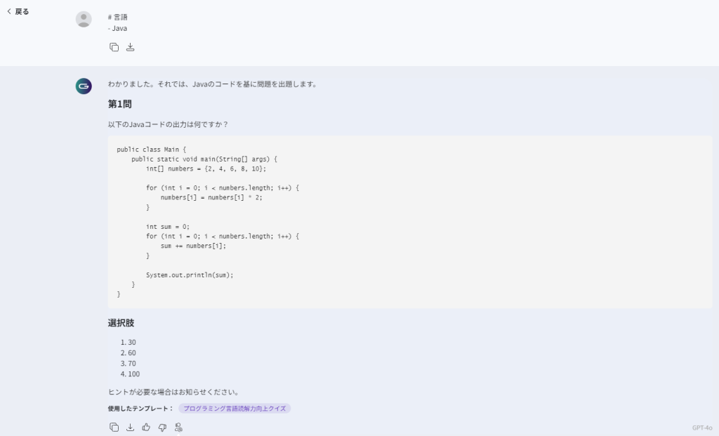 「プログラミング言語読解力向上クイズ」のテンプレートを使用することで、コード読解力を高めることができます。