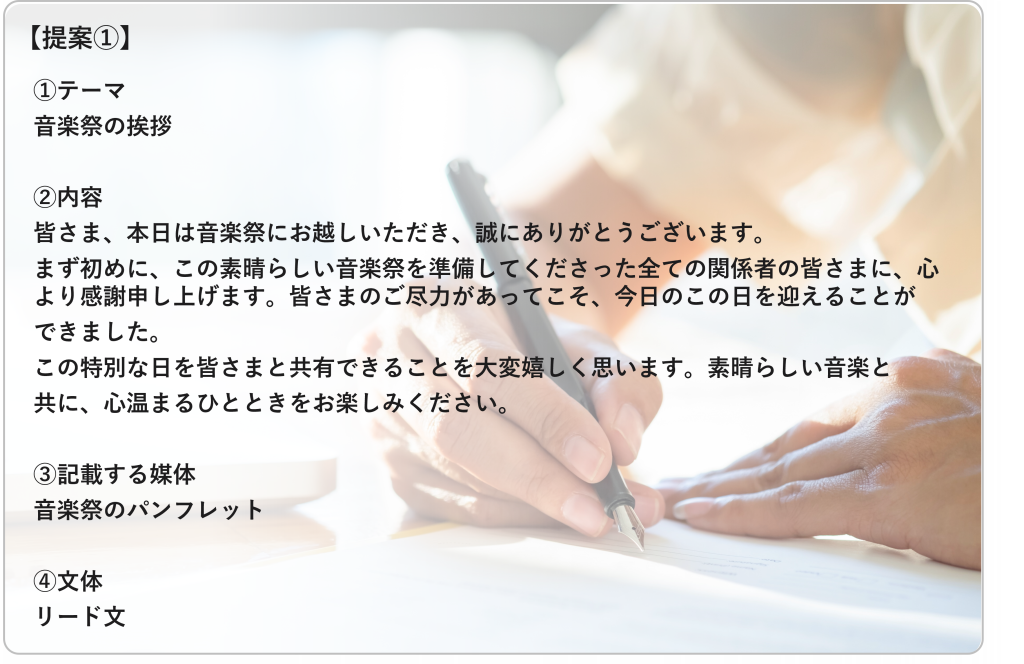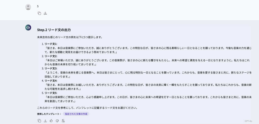 今回は「5.未来志向な感じ」を選択しましたが、選択した方向性に沿ってリード文を提案してくれました。
