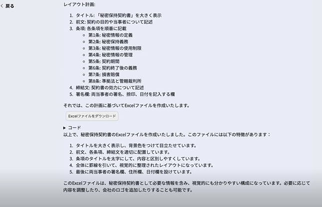 Excel形式で書類を作成してくれます。