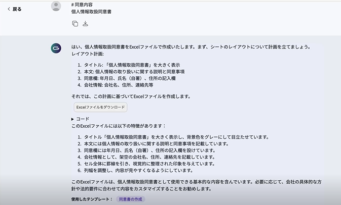 「同意書の作成」を行うテンプレートのデモンストレーションをお届けします。