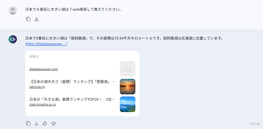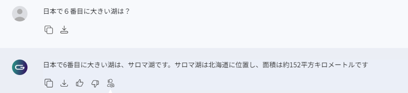 この場合は、LLMに正確な湖の寸法のデータが存在しないため、誤った回答が生成されました。