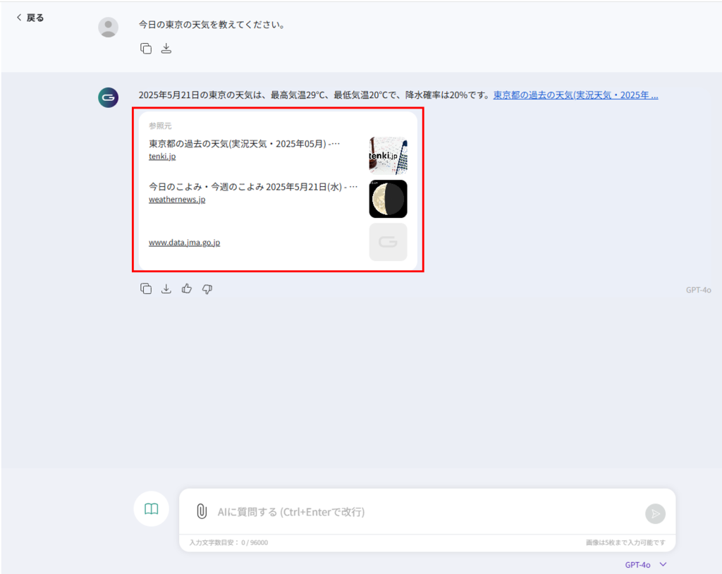 ・システムプロンプトに、参照リンクを出力する指示が含まれている。