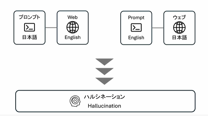 ・言語が異なると、必要な背景情報やコンテキストが正しく伝わらず、AIが不適切な情報を生成する。
