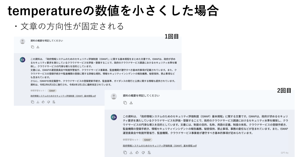 ・TemperatureとTop-pを中心に調整することで出力精度をさらに上げることができる