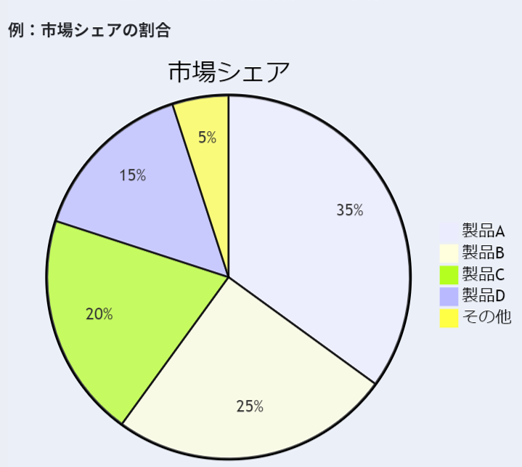市場シェアや予算配分の割合を視覚的に示す際に利用されます。