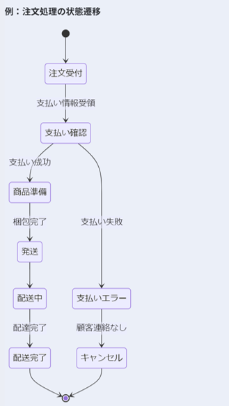 オブジェクトやシステムが取り得る状態とその遷移を表現します。