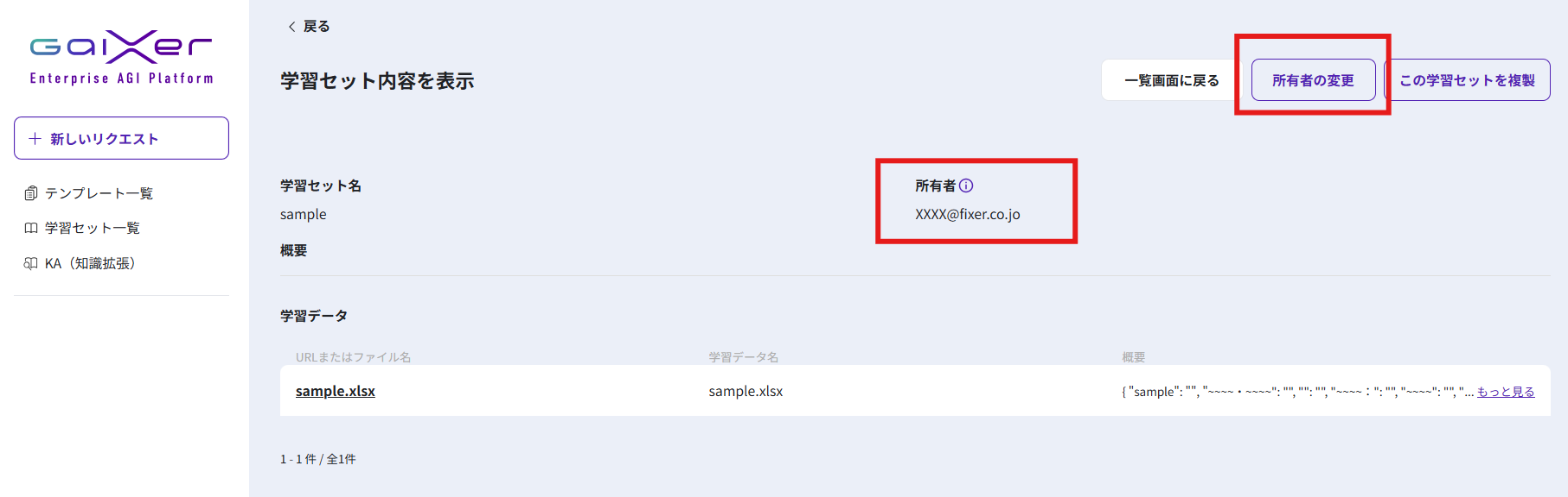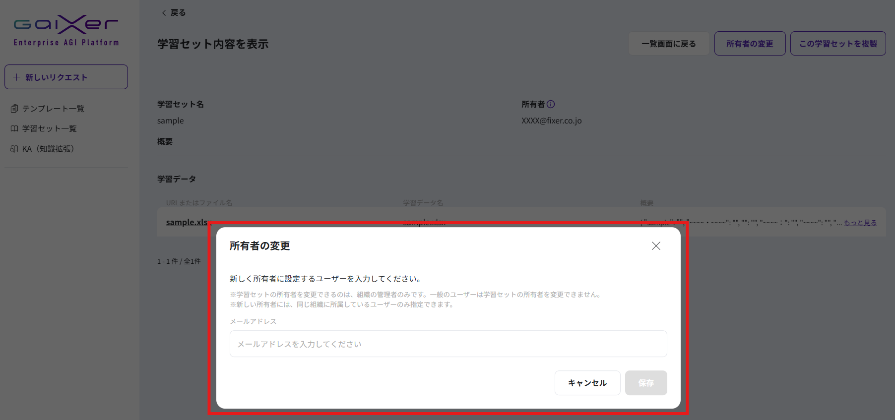 管理者は学習セットの所有者情報の確認や、必要に応じて所有者を変更することが可能です。