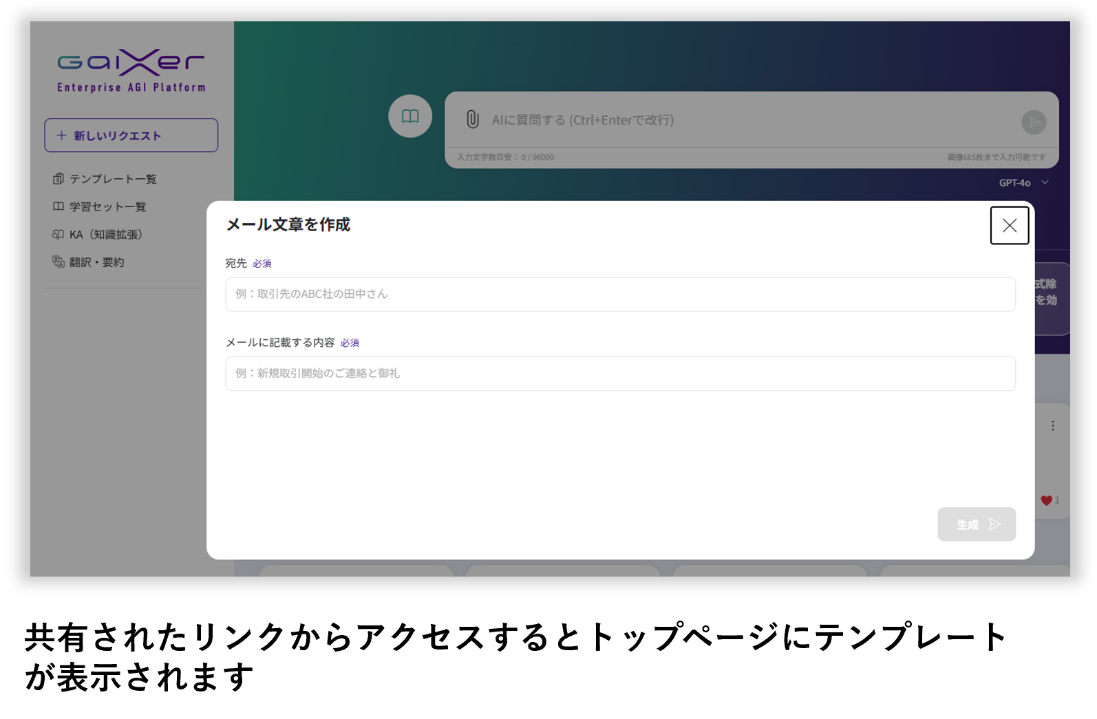GaiXerのプロンプトテンプレートは、ユーザーが簡単に適切なプロンプトを作成できるように設計されています。この機能により、ユーザーは生成AIをより効果的に制御することができ、経験の有無に関わらず高品質なプロンプトを作成することができます。