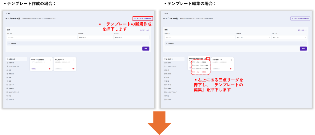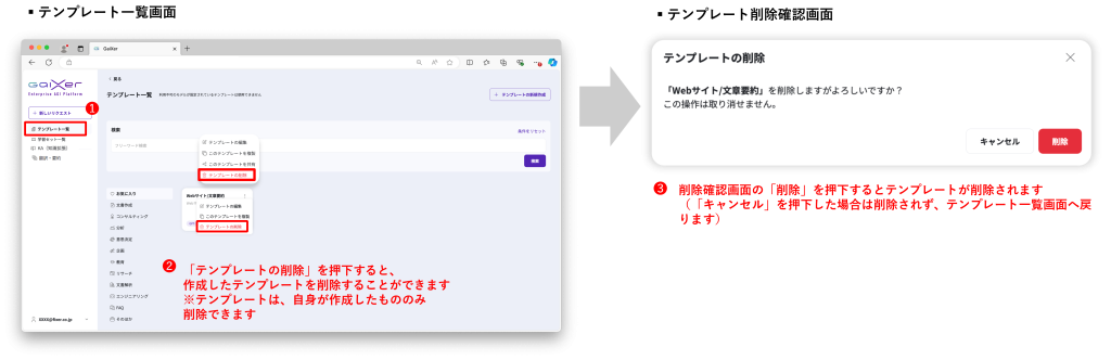 (テンプレートの削除は、自身が作成したもののみ削除できます)
